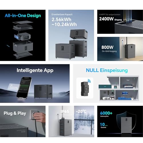 ✅ Effiziente Stromspeicherung: Der integrierte Speicher (2,56 kWh) ist mit einem Zusatzakku (2,56 kWh) auf insgesamt 5,12 kWh erweitert. Bei Bedarf lässt sich das System flexibel auf bis zu 10,24 kWh Gesamtkapazität ausbauen – ideal, um auch in den Abendstunden selbst erzeugten Strom zu nutzen.