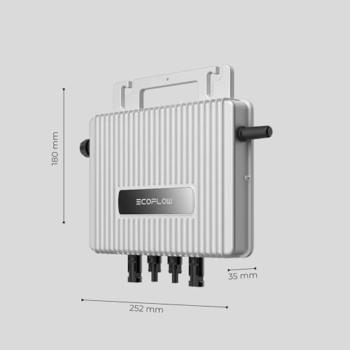 EcoFlow Mikro-Wechselrichter 800 W EFStreamMI800W für Balkonkraftwerk, IP67 wetterfest, Plug&Play Installation, 2 MPPT, Bluetooth & WIFI, inkl. 5m Anschlusskabel & 4x 1m Solar-Verlängerungen, Inverter