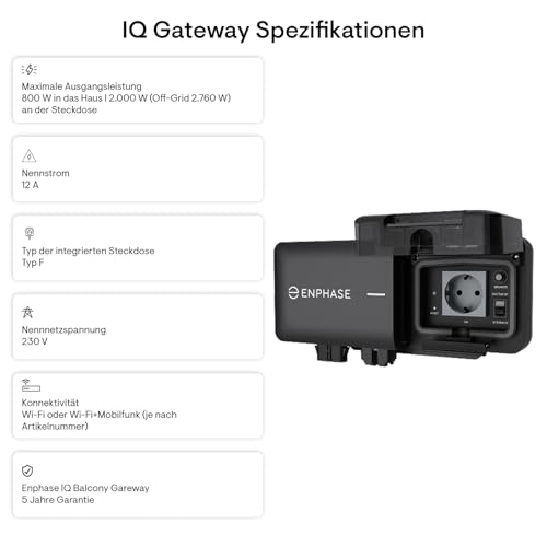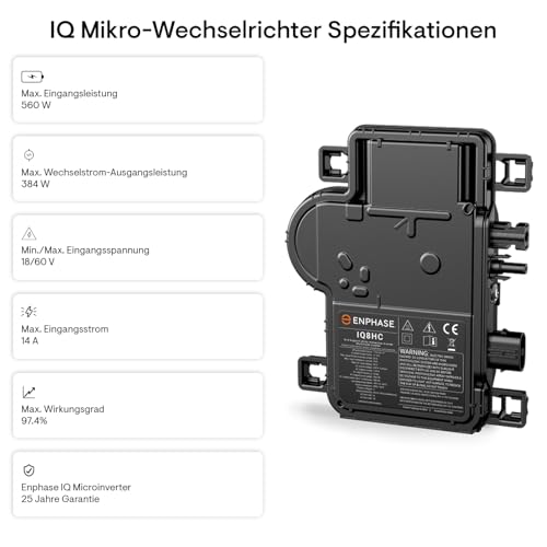 Enphase IQ Balkonkraftwerk 800W mit WiFi | Plug & Play Solaranlage zur Selbstmontage | Strom-Einspeisung über Steckdose | Erweiterbar, Notstromfunktion, IP65/67 Schutz