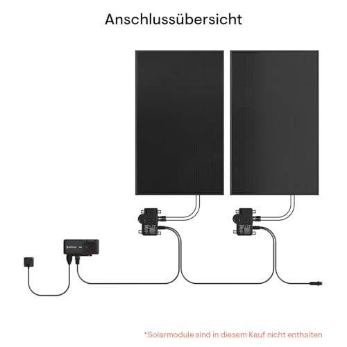 Deine Module, unser Kit: Ohne PV-Module – kompatibel mit gängigen Paneelen mit MC4-Steckern. Mikro-Wechselrichter, Gateway & Kabel inklusive.