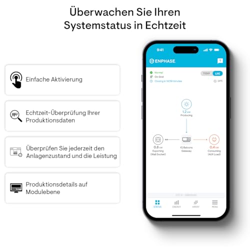App-Setup über WLAN: Schnelle Inbetriebnahme & Monitoring per Enphase App – nur WLAN, keine Mobilfunk-Verbindung erforderlich.