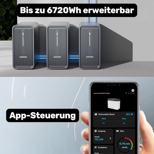 MARSTEK B2500-D Balkonkraftwerk-Solarspeicher 2240Wh | Plug & Play | 1000W Eingangsleistung | Ausgangsleistung von 800W | IP65 | App Steuerung über Wlan & Bluetooth | 6000 Ladezyklen