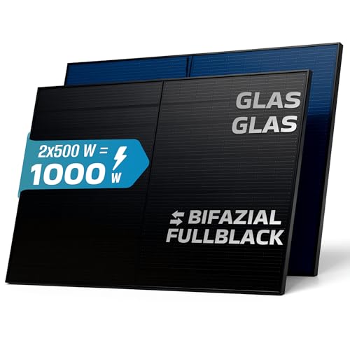 SUNNIVA® Solarmodul 2x 500 W FULL BLACK Bifazial Glas/Glas PV Modul Solarpanel – PMax 1000W (2x500W) Bifacial N-Type, für Balkonkraftwerk oder PV Solar Anlage