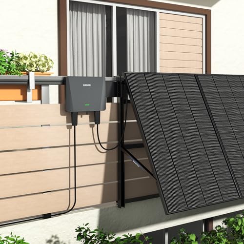 SUNSHARE Ray 600W Balkonkraftwerk mit Halterung (Balkon mit Schild) – Balkonkraftwerk 600W komplett Steckdose – neuester 800 Watt Wechselrichter – Solaranlage Komplettset – inkl Zubehör – 5m Kabel